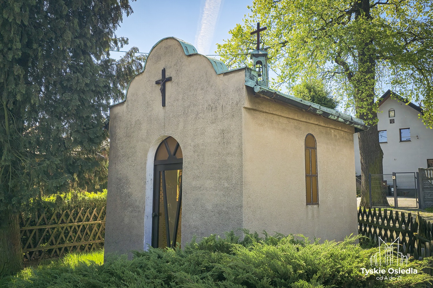 Pierwszy tyski kościół znajdował się prawdopodobnie w okolicy miejsca, gdzie w 1816 roku powstała kapliczka św. Jana Nepomucena. To właśnie na tym terenie, w okolicach XV wieku, pojawiły się pierwsze osady ludzkie na terenie dzisiejszych Tychów, w pobliżu średniowiecznego szlaku handlowego łączącego Oświęcim z Mikołowem oraz nad potokiem Tyskim.